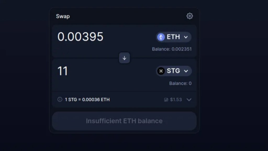 - Visitez https://app.uniswap.org/#/swap et achetez au moins 11 STG.