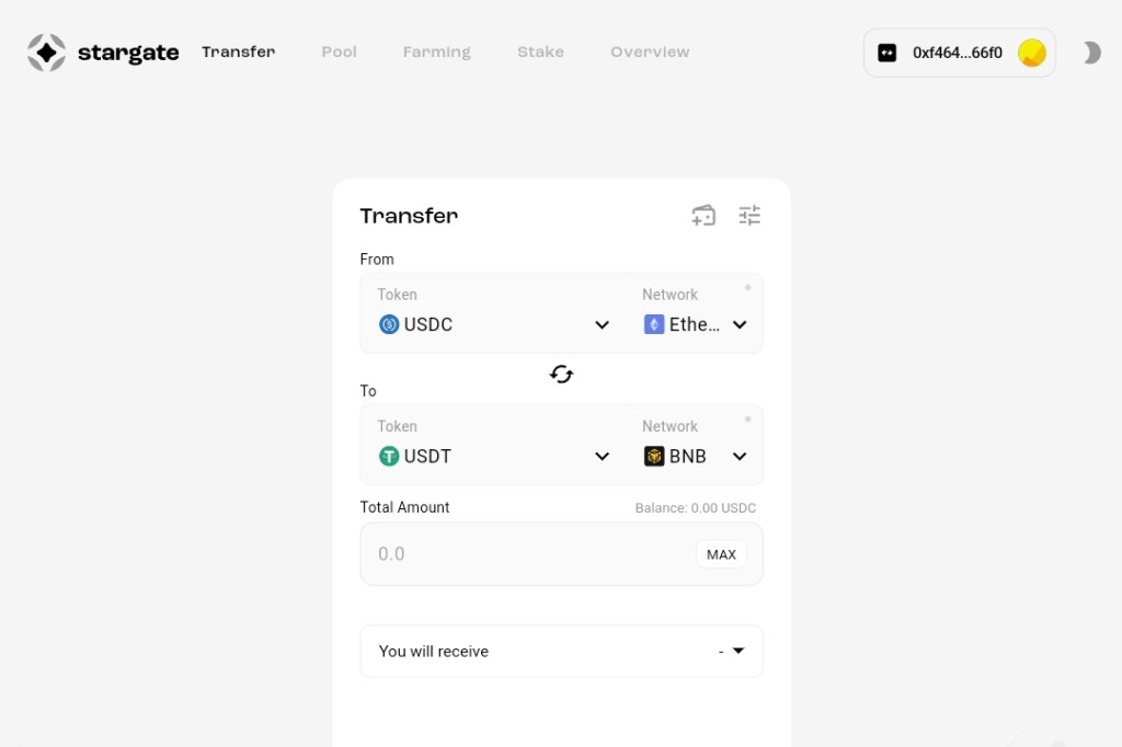 De plus, utilisez Stargate Bridge sur https://stargate.finance/transfer